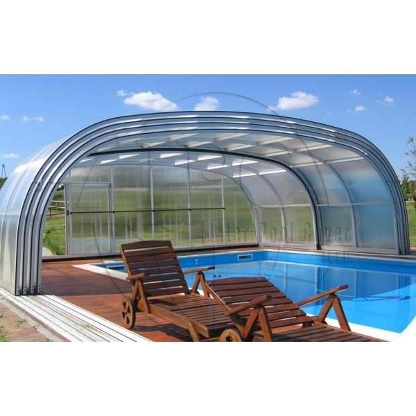 Классическая высокая конструкция раздвижного павильона для бассейна "Лагуна", позволяет ходить под павильоном в полный рост. Павильон «Лагуна» отличается максимальным использованием его внутреннего пространства по всей длине бассейна - идеальное решение для обустройства купального зала. Как любой павильон он за счет парникового эффекта значительно увеличивает купальный сезон, защищает бассейн от загрязнений, атмосферных осадков и домашних животных. А так же в солнечную погоду в закрытом состоянии нагревает воду бассейна.