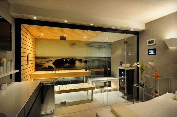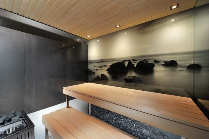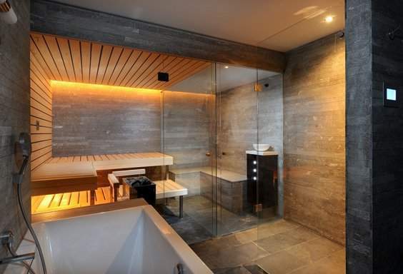 Комфортабельная угловая финская сауна оригинального дизайна отлично будет смотреться как в доме, так и на даче или в загородном коттедже.