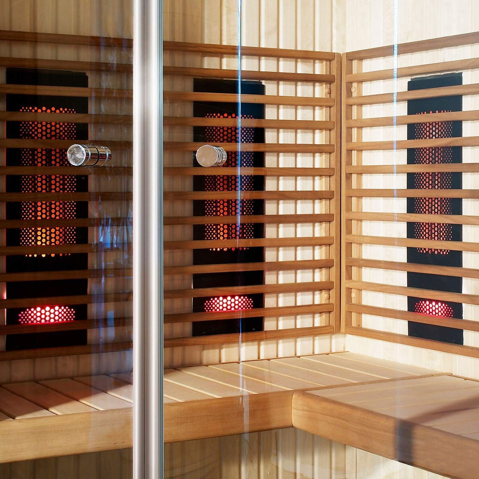 Инфракрасная кабина Rondium является уникальной в своем роде, когда речь идет о законченности и стиле даже в мелочах. Комбинация разнообразных материалов из дерева и металла придает кабине уникальный запоминающийся облик. В декоративный карниз из нержавеющей стали вмонтированы три светодиодных светильника.