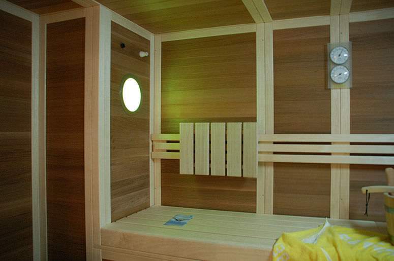 Конструкция кабин сборная, внутренняя отделка выполнена исключительно из красного канадского кедра, материала обладающего антисептическими свойствами и неповторимым ароматом эфирных масел, содержащихся в нем. Уникальное оптическое свойство канадского кедра отражать большую часть тепловых лучей позволяет добиться эффективного и равномерного распространения тепла внутри кабины. По праву считается лучшим из существующих материалов для любых саун.
