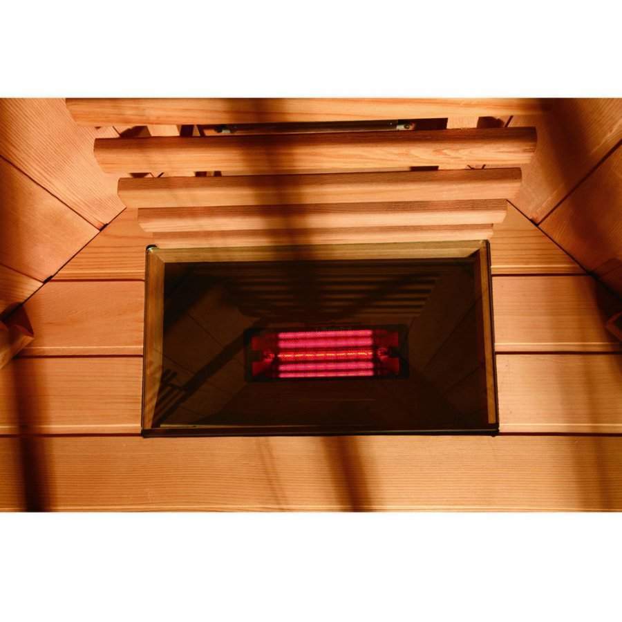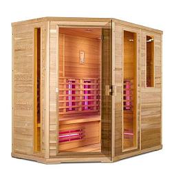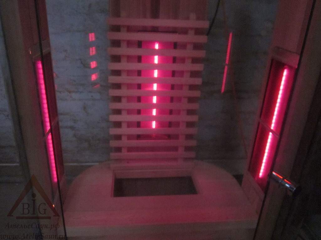 Инфракрасная сауна данной модели закругленной формы из закаленного стекла и красного канадского кедра смотрится шикарно и разместить ее можно даже в небольшой квартире.