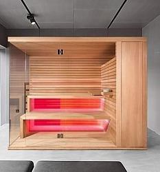Внутри сауны используется светодиодное освещение. Цвет можно изменить на красный, зеленый, синий и градиент.