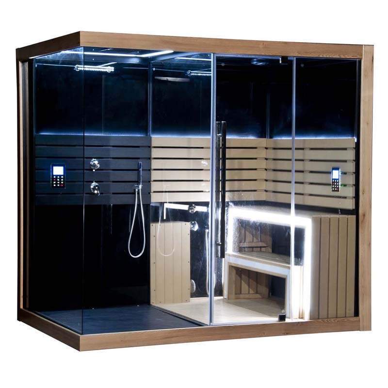 Комплекс "Prada TWIN". Совершенство современности в комбинации двух парных: ФИНСКАЯ САУНА и ТУРЕЦКИЙ ХАМАМ, в дополнение - душ с тремя функциями и с красивой светодиодной подсветкой. Для салонов угодит любому посетителю, а также и для гостей в вашем коттедже.