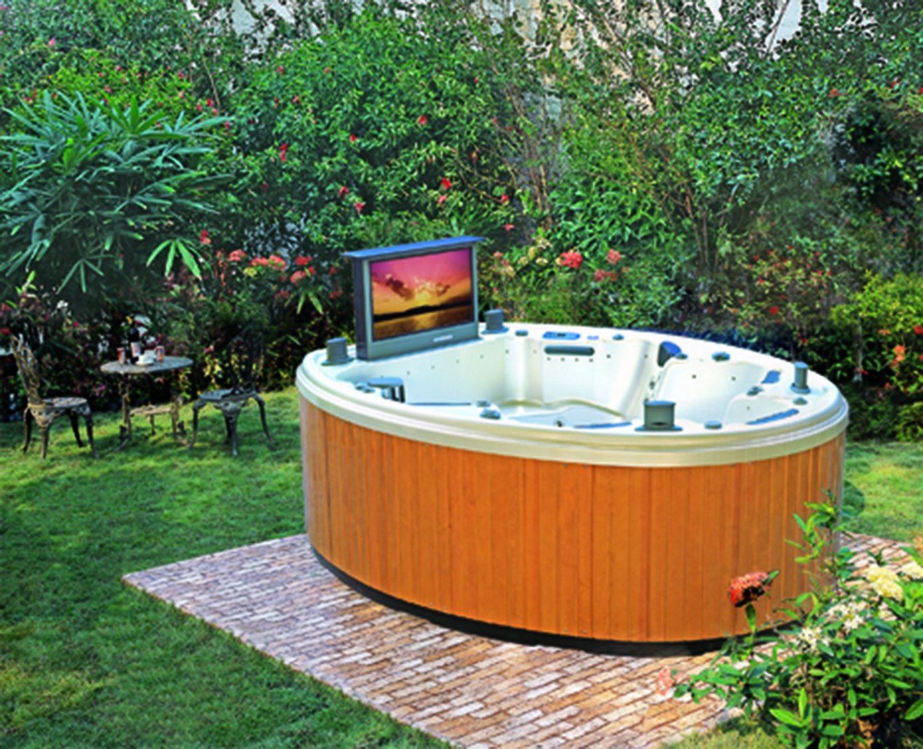 Гидромассажный Спа-Бассейн JNJ SPAS Denver оснащен: 84 мощными форсунками, эко умный 3 кВт нагреватель, стильные накладки форсунок из нержавеющей стали и термоизолирующее утепление чаши, телевизор.