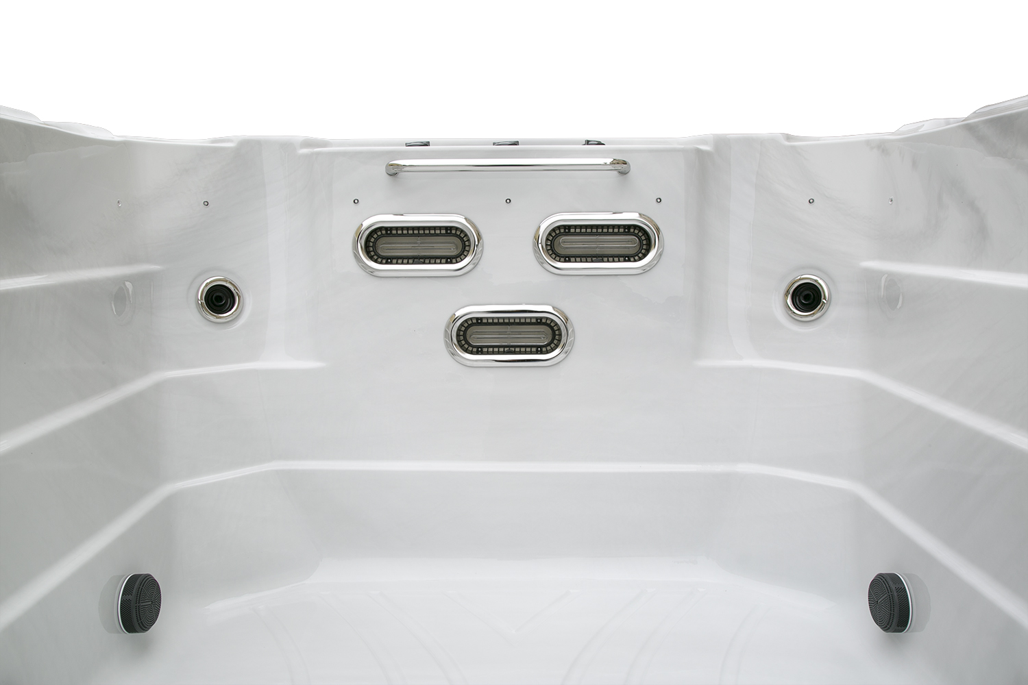 Два гидромассажных насоса по 1,5 кВт в сочетании с 76 форсунками обеспечивают интенсивный массаж и эффективную гидродинамику в спа-зоне. Мощный водяной насос на 2,9 кВт и форсунки противотока нового поколения создают идеальные условия для занятий плаванием и тренировок на воде в основной части бассейна.